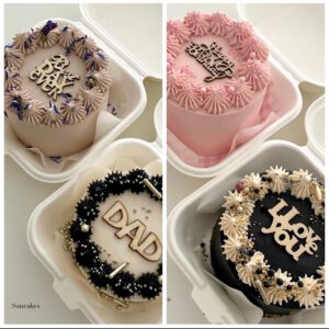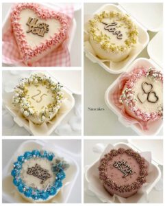 Lief en klein, schattig taarten voor 1 à 2 personen. Leuk om te krijgen of cadeau te geven. In vele kleuren en teksten mogelijk.